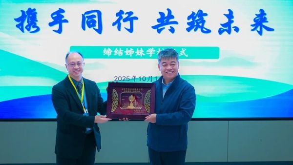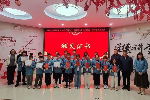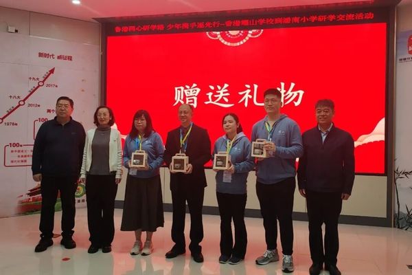 編織香囊環節,兩地師生指尖飛舞,彩線在手中漸漸織出精巧花紋;潘南小學的同學還送上自製書簽,將友誼凝結在方寸之間。在當地老師的帶領下,交流團還參觀了校園,從科技實驗室到藝術工坊,同學們親身體驗了智慧課堂的互動教學魅力。 莊重溫馨的締結儀式上,兩校師生代表共同簽署合作協議,筆尖落下的瞬間,掌聲響起,魯港少年的友誼正式起航。一對一結對環節,有著相同愛好的同學圍坐暢談,交換家鄉特產與手工禮物,破冰遊戲的笑聲裏,「相見恨晚」的親切感悄悄彌漫。