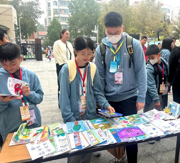 次日:潘南小學結緣,周村古鎮尋匠心 次日,交流團走進潘南小學,拉開「魯港同心研學路少年攜手逐光行」交流活動序幕。校園裏的特色布展率先抓住大家的目光:長桌上,師生書法作品墨香縈繞,盡顯文化魅力;閱讀展區,精美的閱讀小報與手寫卡片,記錄著當地同學與書籍的故事;花馍展前,孩子們輕觸麵塑成的作品,感受傳統手藝的溫度;藥膳區內,老師現熬的藥膳茶飲飄出香氣,讓大家品味「食養同源」的傳統智慧。